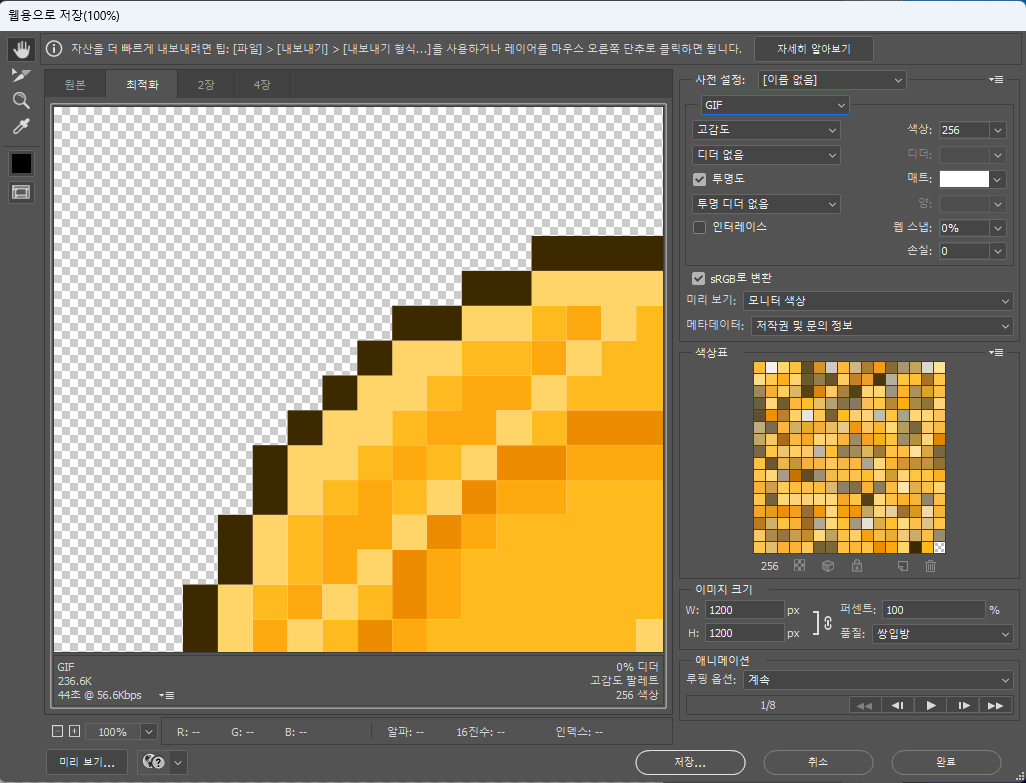 포토샵으로 움짤이미지를 제작하고 gif로 저장할 때