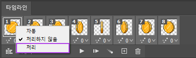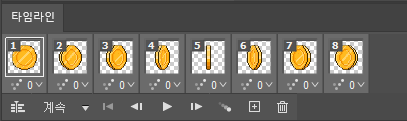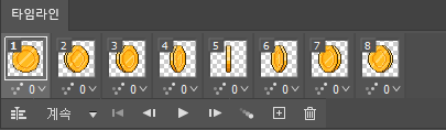 제작시 애니메이션패널 - 타임라인 패널의 각각의 프레임을 재설정해주는 것으로